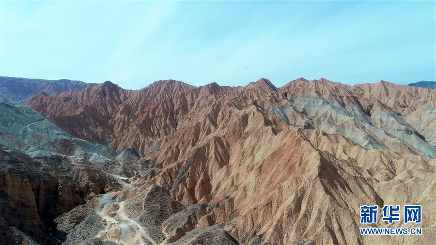 這是6月5日拍攝的位于青海省海南藏族自治州貴德縣境內的丹霞地貌(無人機照片)。在青海省海南藏族自治州貴德縣境內,色彩斑斕的丹霞地貌美如畫卷。新華社記者趙玉和攝。