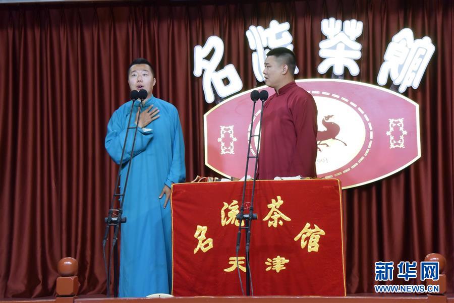 6月6日晚,天津名流茶館的相聲演員在付費(fèi)直播《名流名家“逗你玩”》演出中說相聲。隨著疫情防控形勢逐漸向好,天津的一些茶館紛紛轉(zhuǎn)戰(zhàn)“云端”說相聲,推出付費(fèi)直播演出,并邀請一些幸運(yùn)觀眾到現(xiàn)場觀看,在傳播津味相聲、培養(yǎng)年輕觀眾的同時(shí),也為即將到來的線下演出“預(yù)熱”。新華社記者周潤健攝