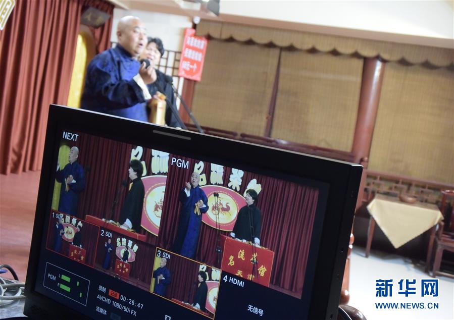 6月6日晚,天津名流茶館的相聲演員在付費(fèi)直播《名流名家“逗你玩”》演出中說相聲。隨著疫情防控形勢(shì)逐漸向好,天津的一些茶館紛紛轉(zhuǎn)戰(zhàn)“云端”說相聲,推出付費(fèi)直播演出,并邀請(qǐng)一些幸運(yùn)觀眾到現(xiàn)場(chǎng)觀看,在傳播津味相聲、培養(yǎng)年輕觀眾的同時(shí),也為即將到來的線下演出“預(yù)熱”。新華社記者周潤(rùn)健攝