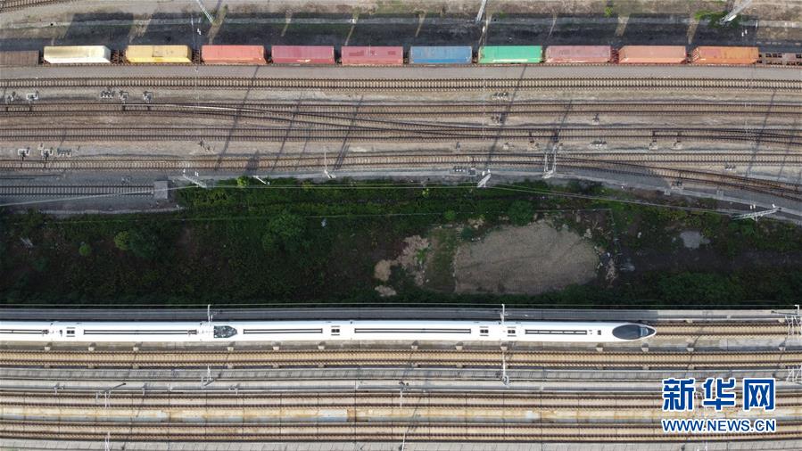 6月6日,合肥首開(kāi)至荷蘭蒂爾堡的中歐班列(上)準(zhǔn)備從合肥北站物流基地駛出(無(wú)人機(jī)照片)。當(dāng)日,搭載82個(gè)標(biāo)準(zhǔn)集裝箱的中歐班列從中國(guó)鐵路上海局集團(tuán)有限公司合肥貨運(yùn)中心合肥北站物流基地駛出發(fā)往荷蘭蒂爾堡,標(biāo)志著合肥中歐班列通往荷蘭蒂爾堡的線路正式開(kāi)通。新華社記者張端攝