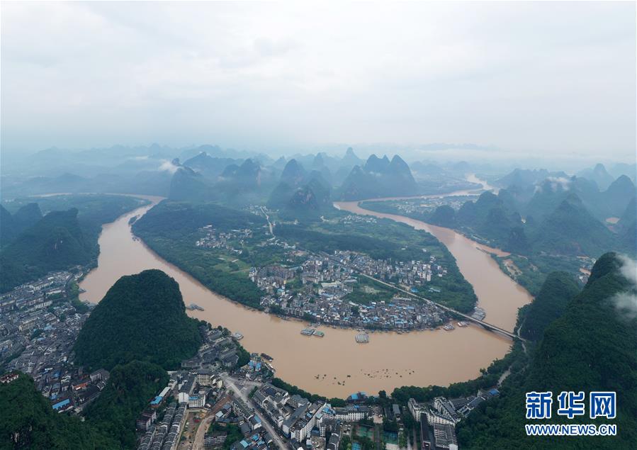 這是洪水奔流的漓江流過廣西陽朔縣境內(nèi)(6月8日攝,無人機(jī)照片)。6月6日至8日,廣西陽朔縣普降暴雨,局部降特大暴雨,全縣9個(gè)鄉(xiāng)鎮(zhèn)出現(xiàn)洪澇災(zāi)害。目前,全縣正有序開展災(zāi)后生產(chǎn)生活恢復(fù)。新華社記者陸波岸攝