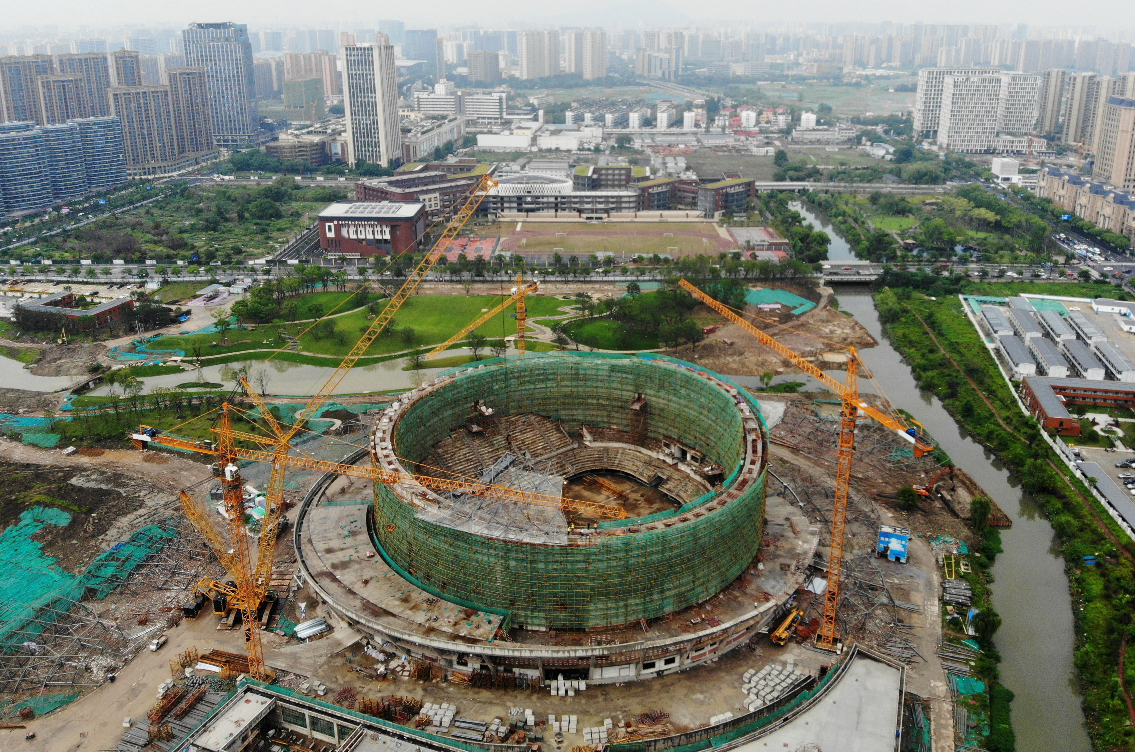2020年6月9日,從空中俯瞰正在建設(shè)中的杭州亞運會乒乓球館。