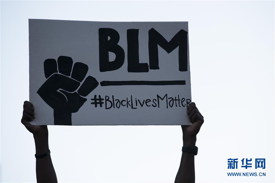 6月8日,一名男子在美國華盛頓白宮附近手舉“黑人的命也是命”的抗議標(biāo)語。新華社記者劉杰攝