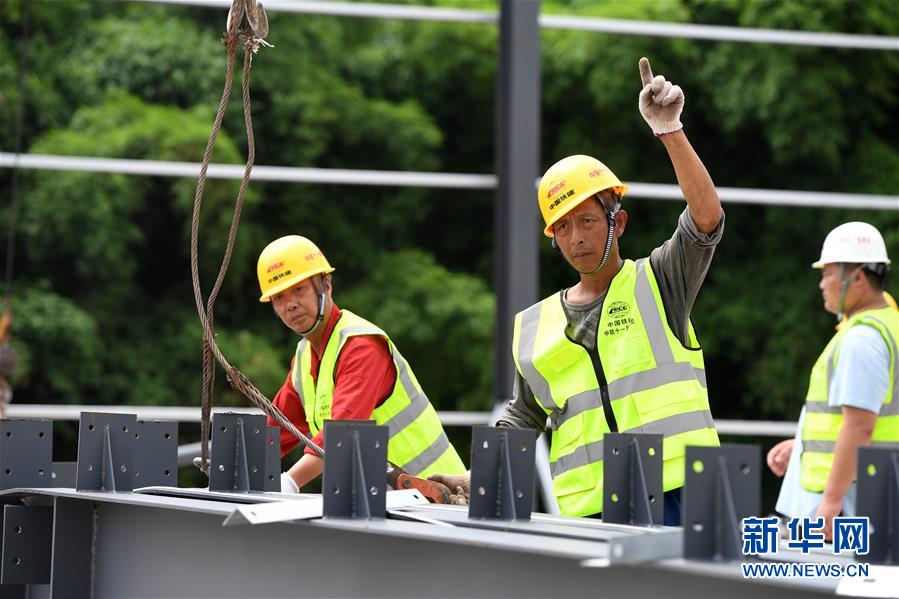 6月9日,工人在位于重慶市巴南區(qū)的渝湘高鐵重慶段建設(shè)工地現(xiàn)場(chǎng)作業(yè)。新華社記者唐奕攝