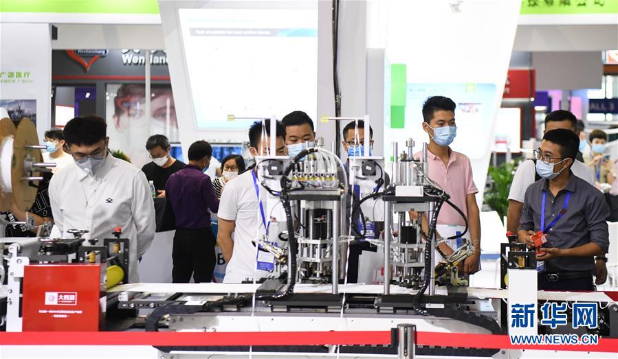 6月10日,觀眾參觀展會(huì)上的一臺(tái)口罩生產(chǎn)設(shè)備。當(dāng)日,廣州國際防疫物資展覽會(huì)在保利世貿(mào)博覽館舉行。本次展會(huì)面積共計(jì)3.6萬平方米,設(shè)有防疫產(chǎn)品、設(shè)備、綜合服務(wù)、原輔料等4個(gè)展區(qū),參展企業(yè)約600家。新華社記者鄧華攝