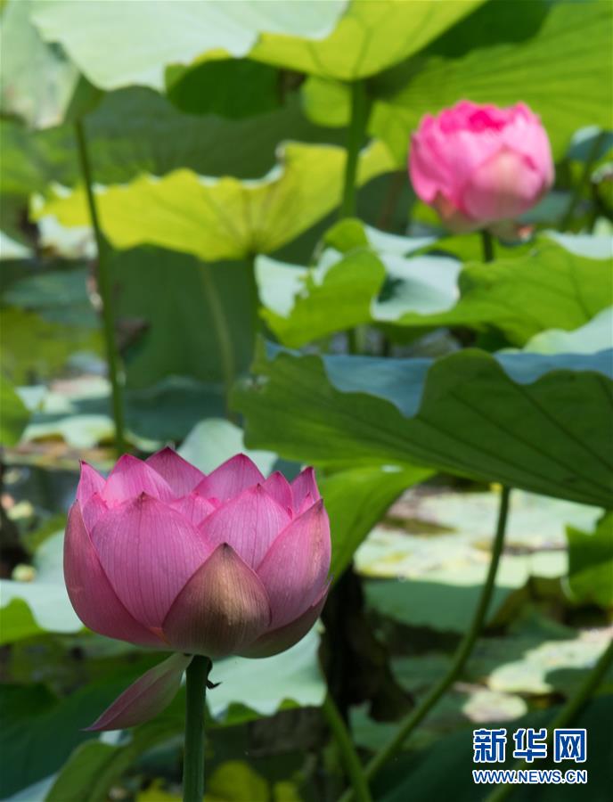 西湖曲院風(fēng)荷盛開(kāi)的荷花(6月12日攝)。隨著氣溫升高,杭州西湖荷花次第開(kāi)放,引得游人駐足。新華社記者翁忻旸 攝