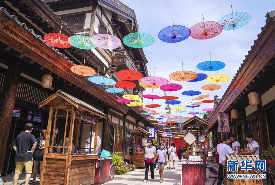 6月13日,市民在長春市世茂蓮花山小鎮(zhèn)寬厚里商街參觀游覽。當日是“文化和自然遺產(chǎn)日”。吉林長春首屆蓮花山消夏生活節(jié)在世茂蓮花山小鎮(zhèn)舉行?;顒訉⒎沁z展示與假日消暑休閑相結(jié)合,讓游人在“古色古香”的油紙傘巷中品傳統(tǒng)文化魅力,享夏日休閑愜意。新華社記者 許暢 攝