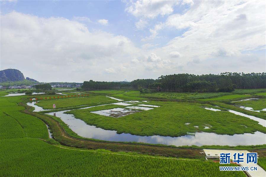 這是廣西武宣縣祿新鎮(zhèn)上堂村稻蝦輪作養(yǎng)殖示范基地(6月17日攝,無人機照片)。新華社記者 曹祎銘 攝