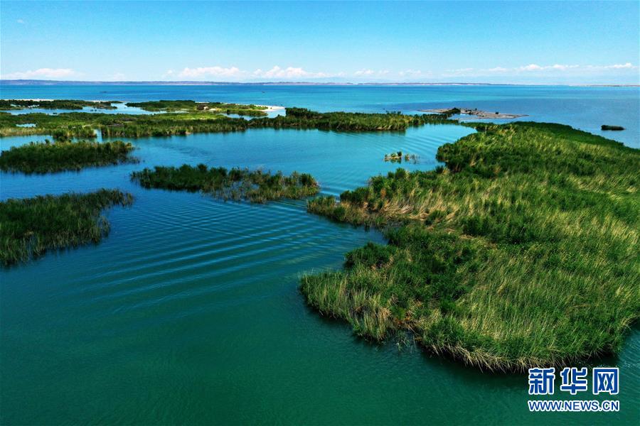 6月19日拍攝的新疆烏倫古湖國家濕地公園(無人機(jī)照片)。烏倫古湖國家濕地公園位于新疆阿勒泰地區(qū)福??h城以西,由烏倫古湖和吉力湖兩部分組成。烏倫古湖濕地公園是遷徙候鳥飛越天山和阿爾泰山的“能量補(bǔ)充站”,良好的濕地生態(tài)吸引著大量遷徙鳥類在此集結(jié)成群,繁殖棲息,成為一道靚麗的風(fēng)景線。新華社記者 沙達(dá)提 攝