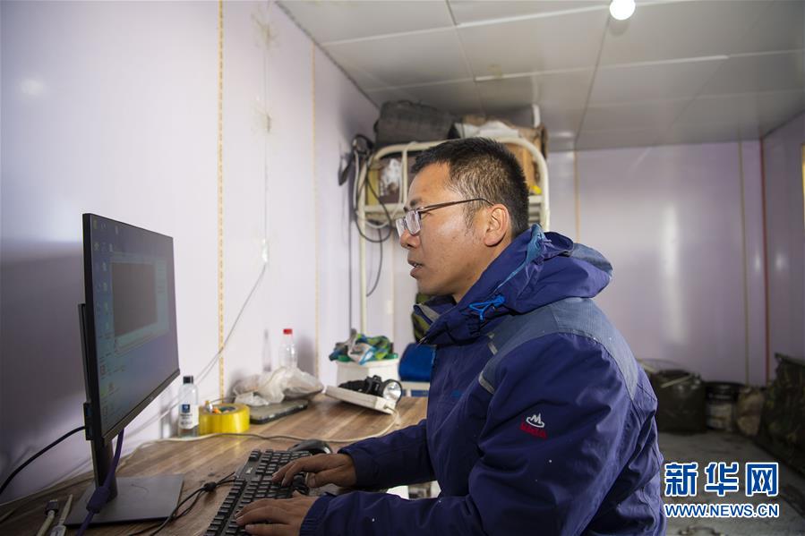 在中國(guó)科學(xué)院新疆天文臺(tái)慕士塔格觀測(cè)站,馮國(guó)杰打開軟件,調(diào)試設(shè)備(6月15日攝)。新華社記者胡虎虎攝