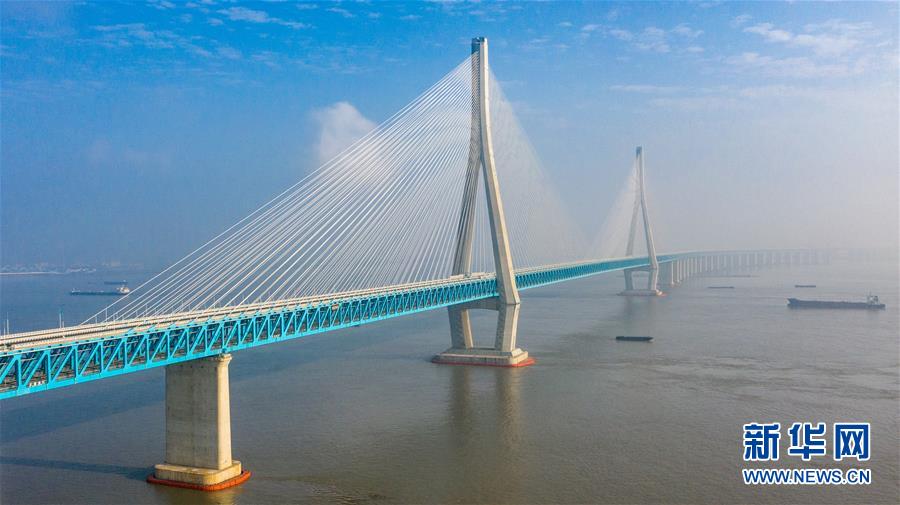 滬蘇通長江公鐵大橋(6月30日攝,無人機(jī)照片)。即將于7月1日通車的滬蘇通長江公鐵大橋北起江蘇南通,南至江蘇張家港,公鐵合建跨江正橋全長5827米,為集合高速公路、客貨混線鐵路、高速鐵路的“三合一”過江通道,建成通車后將有效促進(jìn)長三角城市群跨江融合、協(xié)同發(fā)展。新華社記者李博攝