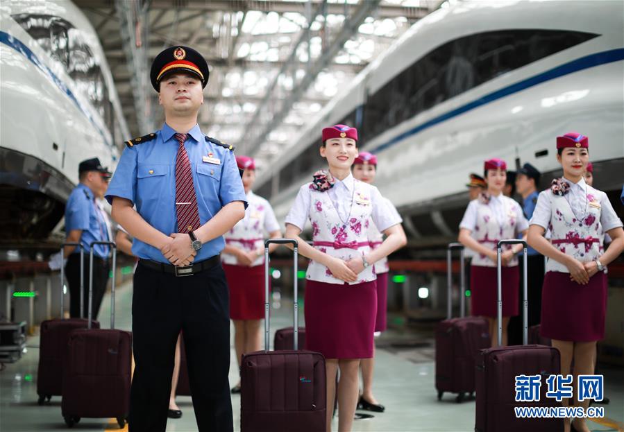 7月3日,擔任首發(fā)列車值乘工作的班組人員在貴陽亮相。 新華社記者 劉續(xù) 攝