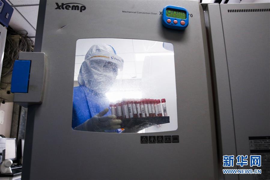 7月3日,中日友好醫(yī)院檢驗科新冠核酸檢測實驗室的檢驗人員張鑫取出經(jīng)過滅活的樣本。新華社記者張玉薇攝