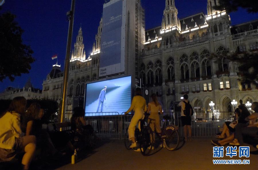 7月4日,觀眾們?cè)趭W地利首都維也納市政廳廣場(chǎng)外場(chǎng)區(qū)域觀看維也納電影節(jié)開(kāi)幕電影——貝多芬的歌劇《菲岱利奧》。新華社記者郭晨攝