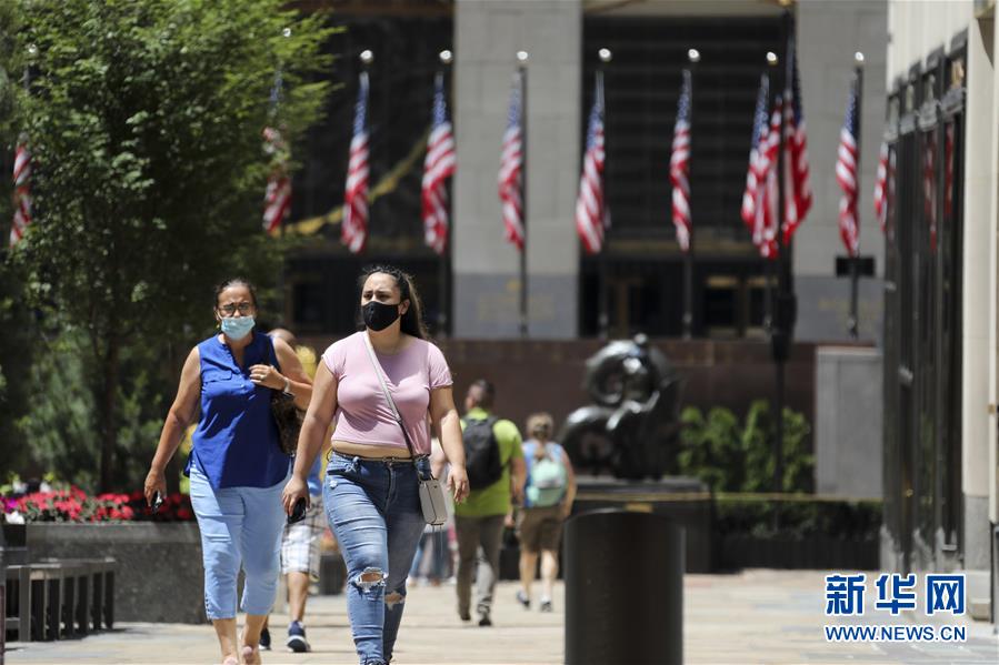 7月4日,人們戴著口罩走在美國紐約第五大道。當(dāng)日是美國獨立日,美國多地疫情仍面臨嚴(yán)峻形勢。美國約翰斯·霍普金斯大學(xué)實時統(tǒng)計數(shù)據(jù)顯示,美國累計新冠確診病例4日已超過280萬例。新華社記者王迎攝