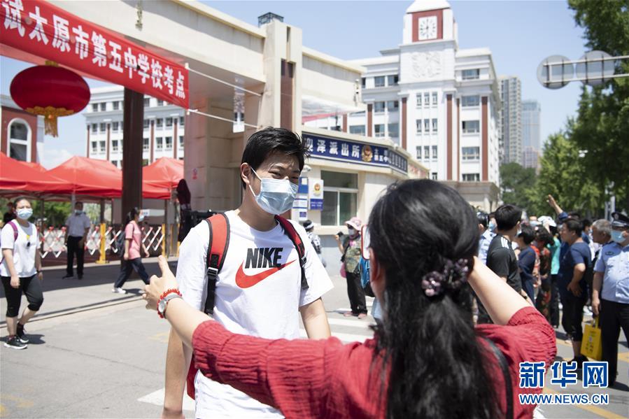7月7日,在山西省太原市第五中學校考點,結(jié)束首場科目考試的考生走出考場。當日,2020年高考拉開帷幕。新華社記者楊晨光攝