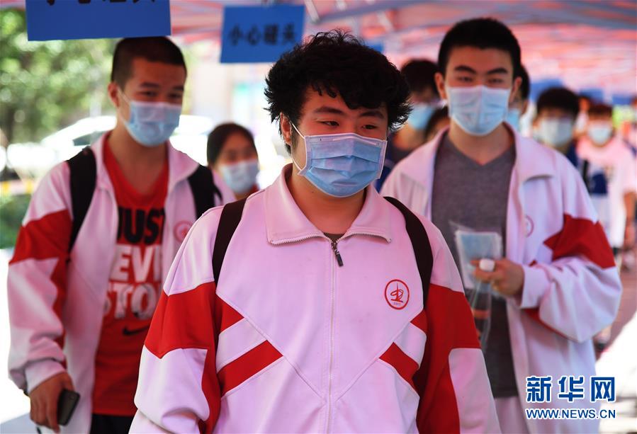 7月7日,在山西省太原市第五中學(xué)??键c(diǎn),結(jié)束首場(chǎng)科目考試的考生走出考場(chǎng)。當(dāng)日,2020年高考拉開(kāi)帷幕。新華社記者楊晨光攝