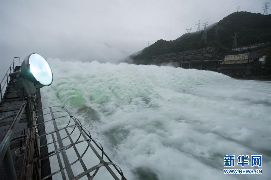 7月7日,新安江電廠工作人員從開啟7孔泄洪的新安江水庫(kù)壩底經(jīng)過(guò)。受持續(xù)降水影響,浙江新安江水庫(kù)水位持續(xù)快速上升。繼當(dāng)日10時(shí)開啟3孔、12時(shí)開啟5孔泄洪后,新安江水庫(kù)于16時(shí)增加到7孔泄洪。新安江水庫(kù)是華東地區(qū)最大的水庫(kù),在錢塘江流域的防洪度汛中起到關(guān)鍵作用。新華社記者翁忻旸攝