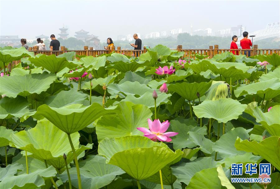 7月7日,游客在唐山市南湖公園欣賞盛開的荷花。近日,河北省唐山市南湖公園內(nèi)荷花競相綻放,呈現(xiàn)出“接天蓮葉無窮碧,映日荷花別樣紅”的美麗景象,吸引了眾多游客前來觀賞。新華社記者楊世堯攝