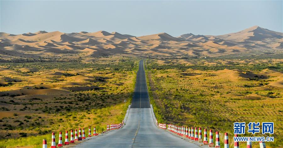 這是7月8日拍攝的騰格里沙漠風(fēng)光。位于內(nèi)蒙古自治區(qū)阿拉善左旗西南部和甘肅省中部邊境的騰格里沙漠是我國第四大沙漠,總面積約為4.3萬平方公里。夏日傍晚,騰格里沙漠連綿的沙丘被日光勾勒出美麗的線條,美不勝收。新華社記者連振攝