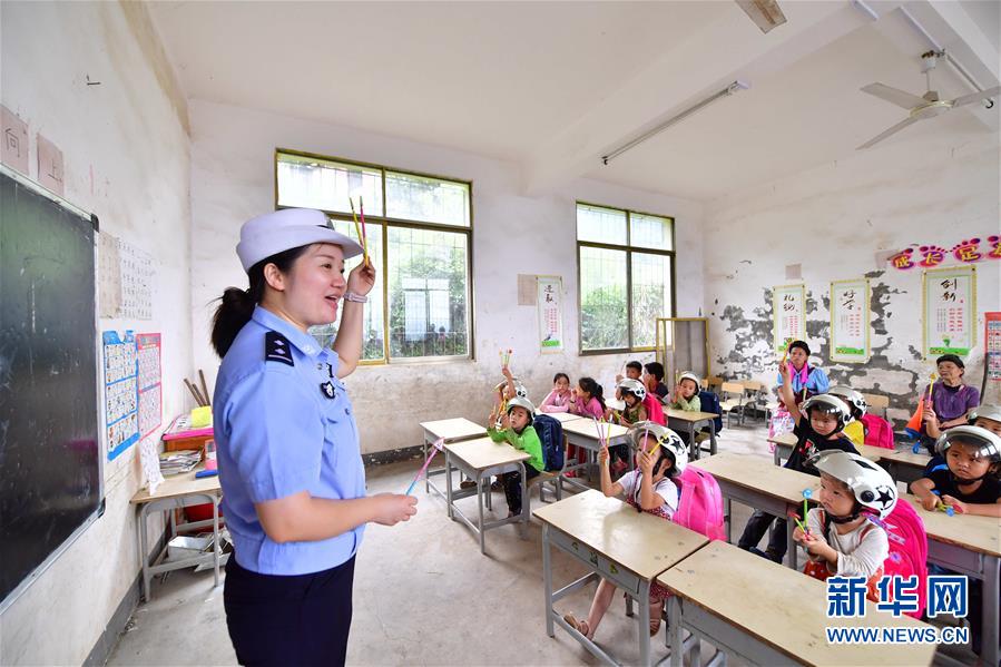 7月11日,柳州市交警支隊民警給小朋友們上交通安全知識課。當(dāng)日,廣西柳州市交警支隊的民警來到融水苗族自治縣大浪鎮(zhèn)大新村紅鄧屯教學(xué)點,開展暑期交通安全教育活動,增強孩子們的安全出行意識。新華社記者黃孝邦攝