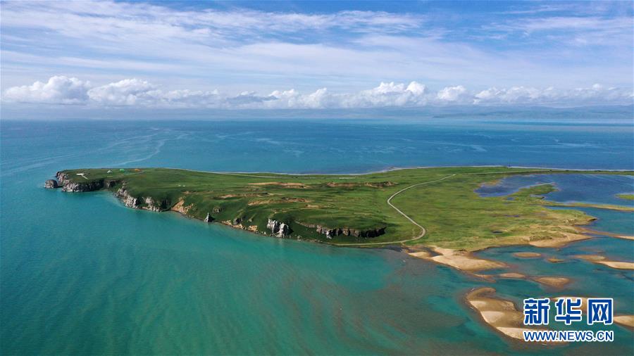 7月10日拍攝的青海湖風(fēng)光(無人機(jī)照片)。盛夏時(shí)節(jié),被譽(yù)為“中國最美湖泊”的青海湖畔景色宜人,藍(lán)天、白云、湖水與草原組成一幅壯美的畫卷。新華社記者 張宏祥 攝