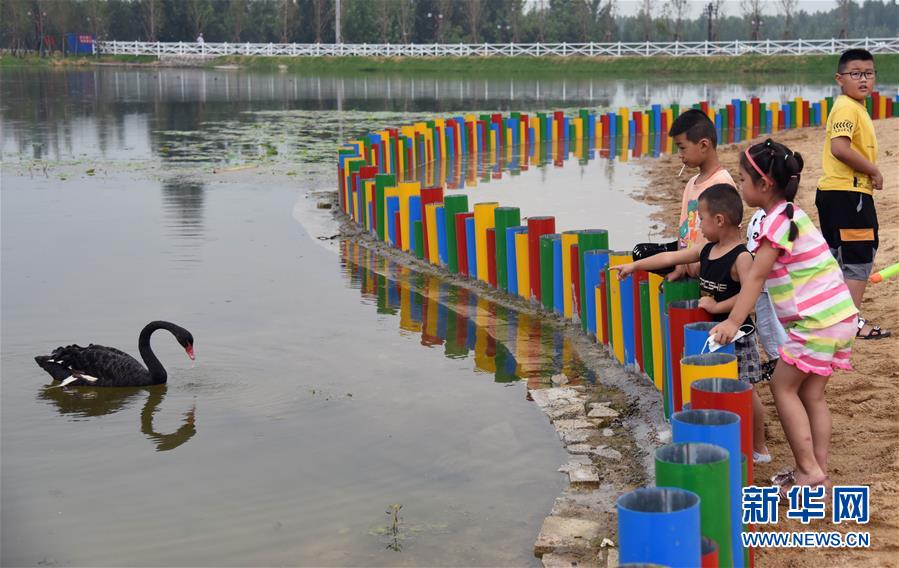7月14日,小朋友在汶上縣白石鎮(zhèn)北泉村民俗旅游區(qū)玩耍。近年來,山東省汶上縣在鄉(xiāng)村振興過程中整治鄉(xiāng)村環(huán)境、發(fā)展生態(tài)產(chǎn)業(yè),建設美麗宜居的綠色鄉(xiāng)村。新華社記者 王凱 攝
