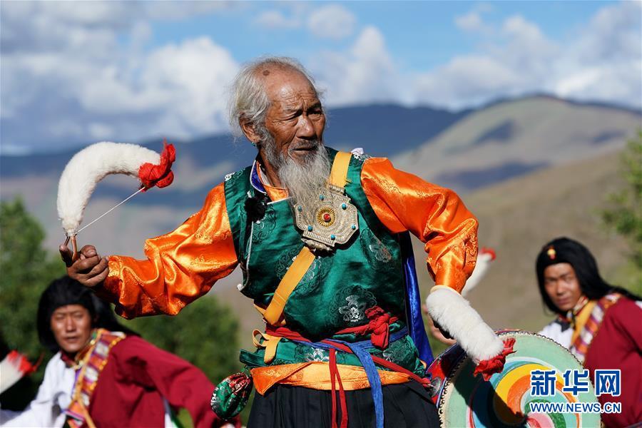 尼瑪老人的弟子們在表演“久河卓舞”(7月1日攝)。新華社記者普布扎西攝