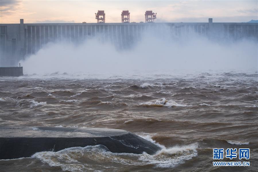 7月19日,三峽樞紐開啟泄洪深孔泄洪。19日20時,三峽水庫入庫流量4.6萬立方米/秒,較本輪洪水的峰值6.1萬立方米/秒下降了1.5萬立方米/秒?!伴L江2020年第2號洪水”平穩(wěn)通過三峽大壩。新華社記者肖藝九攝