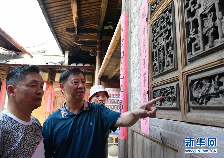 7月19日,游客在永泰縣同安鎮(zhèn)愛荊莊里聽永泰縣莊寨民俗專家鮑道文(左二)現(xiàn)場講解。近年來,福建省福州市永泰縣重視古莊寨保護與利用工作,遵循“保護為主、修舊如舊”原則,加大修繕保護力度,通過對古莊寨古村落等物質(zhì)載體進行活化利用,打造莊寨+旅游、莊寨+研學等產(chǎn)業(yè)發(fā)展模式,帶動鄉(xiāng)村振興。永泰縣地處福州西南部,擁有保存較好的古莊寨152座,面積1000平方米以上、年代100年以上98座。新華社記者魏培全攝