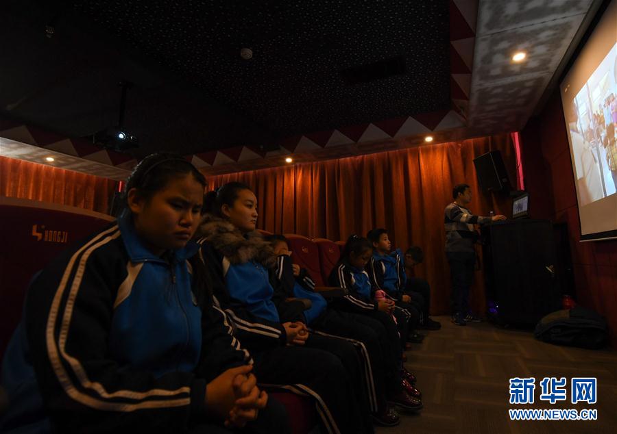2019年12月3日,視障孩子在聽蘇日娜解說電影。當日,家住內(nèi)蒙古呼和浩特市的蘇日娜來到內(nèi)蒙古圖書館內(nèi)的殘障人圖書館,為視障人士舉辦詩歌朗誦會并解說電影。新華社記者彭源攝