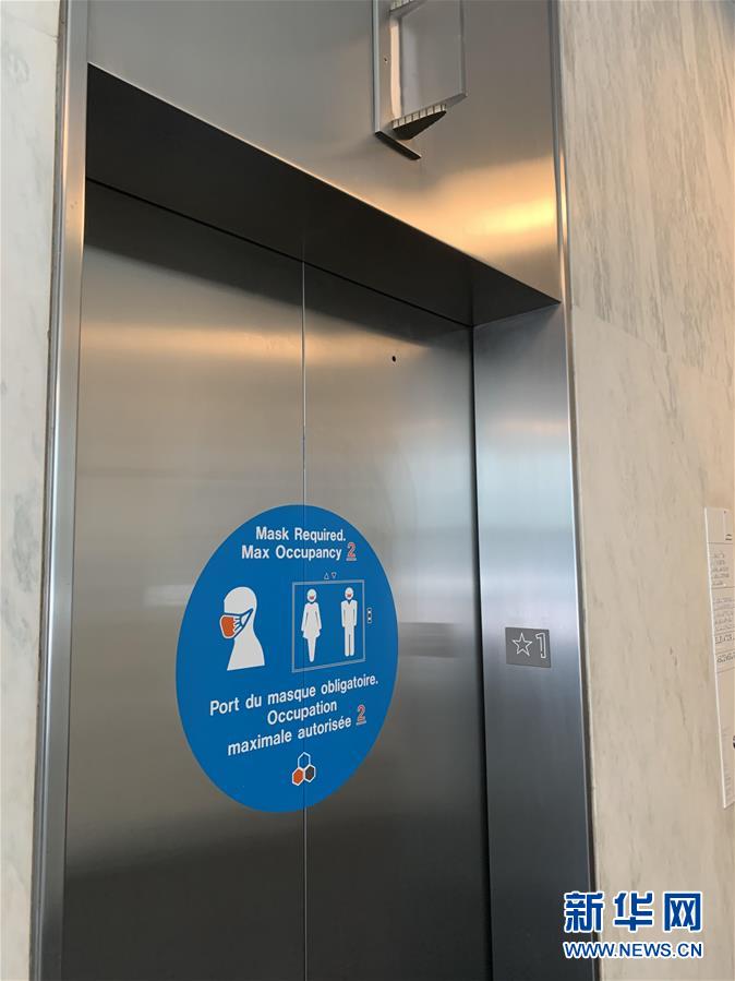 7月20日,在位于紐約的聯(lián)合國總部,電梯門上張貼著要求人們在公共場所佩戴口罩等標(biāo)識。受新冠疫情影響而實行遠(yuǎn)程辦公4個多月的紐約聯(lián)合國總部20日進(jìn)入重啟第一階段。按規(guī)定,該階段每天進(jìn)入總部大樓人數(shù)不能超過400人。新華社記者王建剛攝