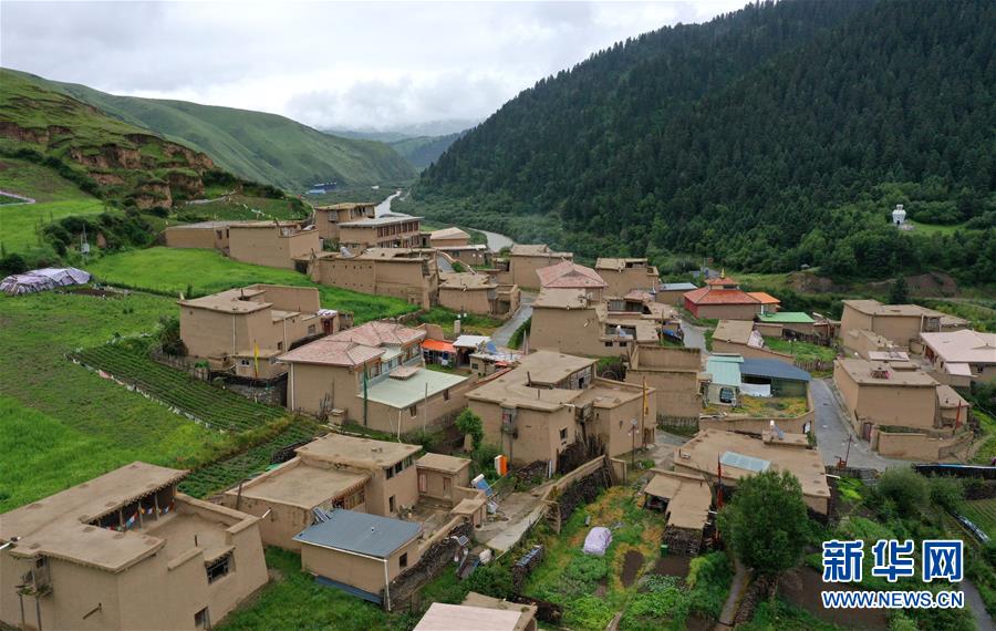 7月5日拍攝的阿壩縣查理鄉(xiāng)神座村(無(wú)人機(jī)照片)。新華社記者陳天湖攝