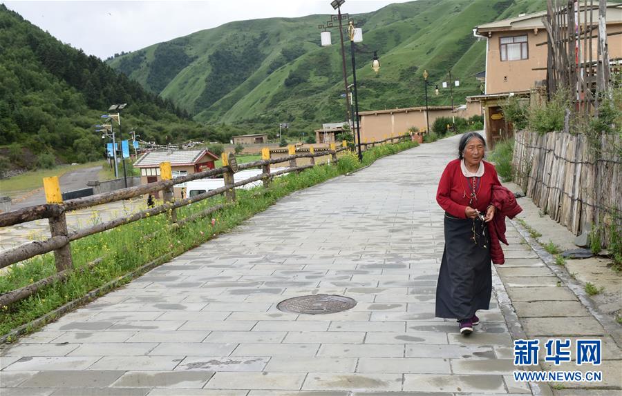 7月5日,一名藏族村民走在阿壩縣查理鄉(xiāng)神座村里。新華社記者陳?ài)茢z