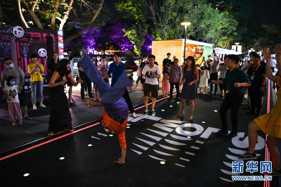 7月23日晚,在成都市成華區(qū)望平街濱河路的天府文創(chuàng)大集市上,游人在文化墻前錄制視頻。近日,天府文創(chuàng)大集市活動(dòng)在成都全市范圍內(nèi)開(kāi)展,以成都原創(chuàng)IP為主的優(yōu)秀文創(chuàng)產(chǎn)品集體亮相夜幕下的成都街頭。據(jù)了解,本次天府文創(chuàng)大集市共分為七個(gè)會(huì)場(chǎng),以“讀書(shū)、納涼、賞文創(chuàng)——盛夏中的新消費(fèi)”為主題,將持續(xù)到7月26日。新華社記者 王曦 攝