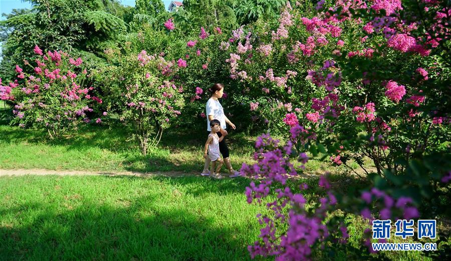 7月26日,村民在欒卸村一處花園游玩。盛夏,位于太行山區(qū)的河北省沙河市欒卸村滿目蔥蘢,山水、田園、民居構成一幅美麗鄉(xiāng)村圖景。新華社記者 牟宇 攝