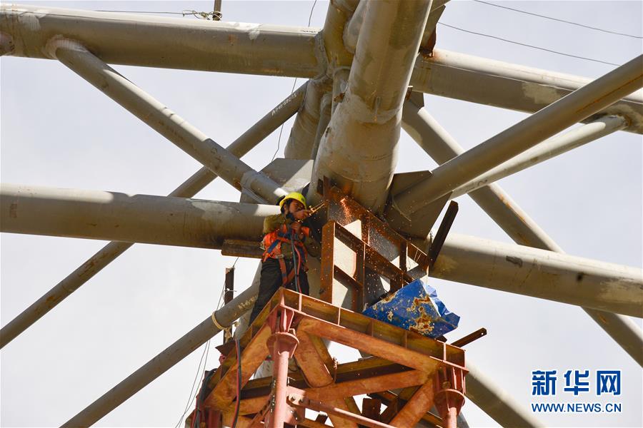 7月27日,工人在拉薩貢嘎國際機場T3航站樓的工地上作業(yè)。新華社記者 田金文 攝