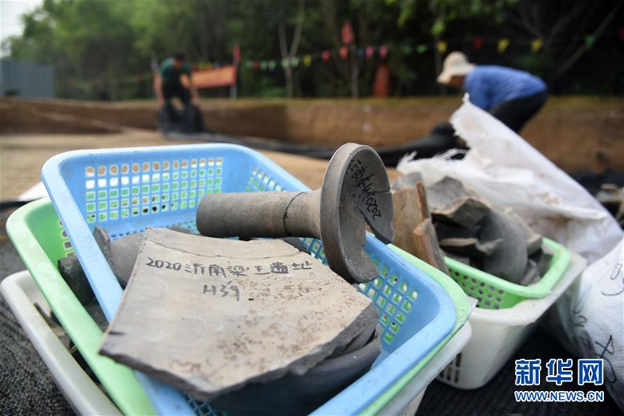 這是濟(jì)南梁王遺址內(nèi)戰(zhàn)國(guó)時(shí)期古城遺址出土的文物(7月28日攝)。新華社記者王凱攝