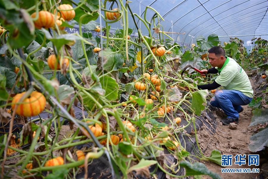 7月24日,在陜西漢陰縣澗池鎮(zhèn)紫云南郡易地扶貧搬遷安置社區(qū)配套的農(nóng)業(yè)產(chǎn)業(yè)園內(nèi),社區(qū)居民唐文斌在管護大棚南瓜。陜南地區(qū)地處秦巴山區(qū),是陜西脫貧攻堅的主戰(zhàn)場。近年來,陜南各縣區(qū)因地制宜、精準施策,通過發(fā)展社區(qū)工廠、特色種植、旅游扶貧、技能培訓、電商帶貨等措施,促進多種產(chǎn)業(yè)發(fā)展,助力農(nóng)民增收。新華社記者邵瑞攝