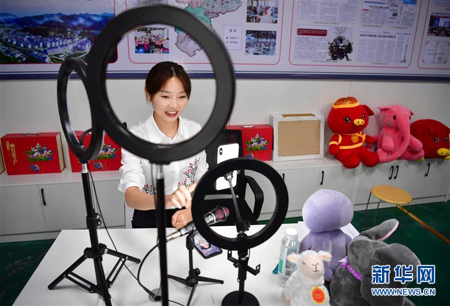 7月24日,在陜西平利縣老縣鎮(zhèn)錦屏社區(qū)一間直播間,電商主播王秀梅在推介當?shù)禺a(chǎn)品。陜南地區(qū)地處秦巴山區(qū),是陜西脫貧攻堅的主戰(zhàn)場。近年來,陜南各縣區(qū)因地制宜、精準施策,通過發(fā)展社區(qū)工廠、特色種植、旅游扶貧、技能培訓、電商帶貨等措施,促進多種產(chǎn)業(yè)發(fā)展,助力農(nóng)民增收。新華社記者邵瑞攝