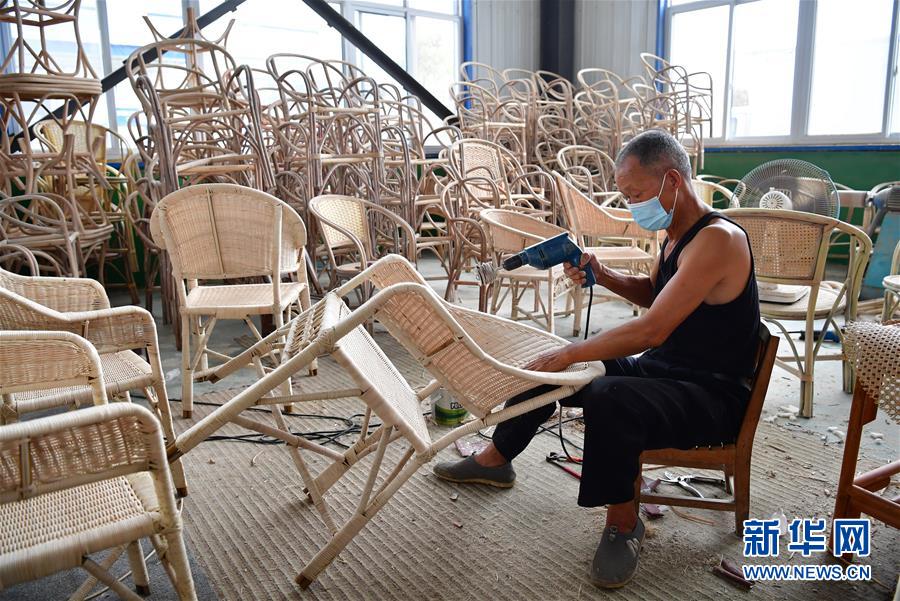 7月25日,在陜西漢陰縣澗池鎮(zhèn)紫云南郡易地扶貧搬遷安置社區(qū)的社區(qū)工廠內(nèi),社區(qū)居民在制作藤條椅。陜南地區(qū)地處秦巴山區(qū),是陜西脫貧攻堅的主戰(zhàn)場。近年來,陜南各縣區(qū)因地制宜、精準施策,通過發(fā)展社區(qū)工廠、特色種植、旅游扶貧、技能培訓、電商帶貨等措施,促進多種產(chǎn)業(yè)發(fā)展,助力農(nóng)民增收。新華社記者邵瑞攝