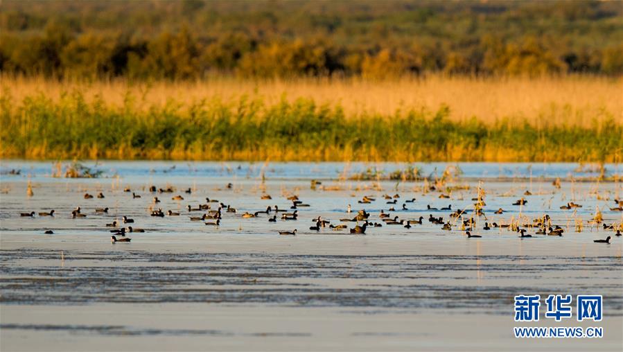 7月28日,灰雁在桃力廟—阿拉善灣海子覓食。鄂爾多斯?jié)竦匚挥趲觳箭R沙漠、毛烏素沙地接壤地帶,2002年被列入國際重要濕地名錄。從2006年開始,由于濕地湖面萎縮、湖心島消失,在此筑巢繁殖的世界瀕危物種遺鷗幾近消失。近年來,當地采取多種治理措施,濕地生態(tài)環(huán)境逐步好轉。2019年起,濕地內的桃力廟—阿拉善灣海子迎來遺鷗大規(guī)?!盎貧w”。如今,40多種鳥類在此棲息,鄂爾多斯?jié)竦刂匦鲁蔀轼B類的樂園。新華社記者連振攝
