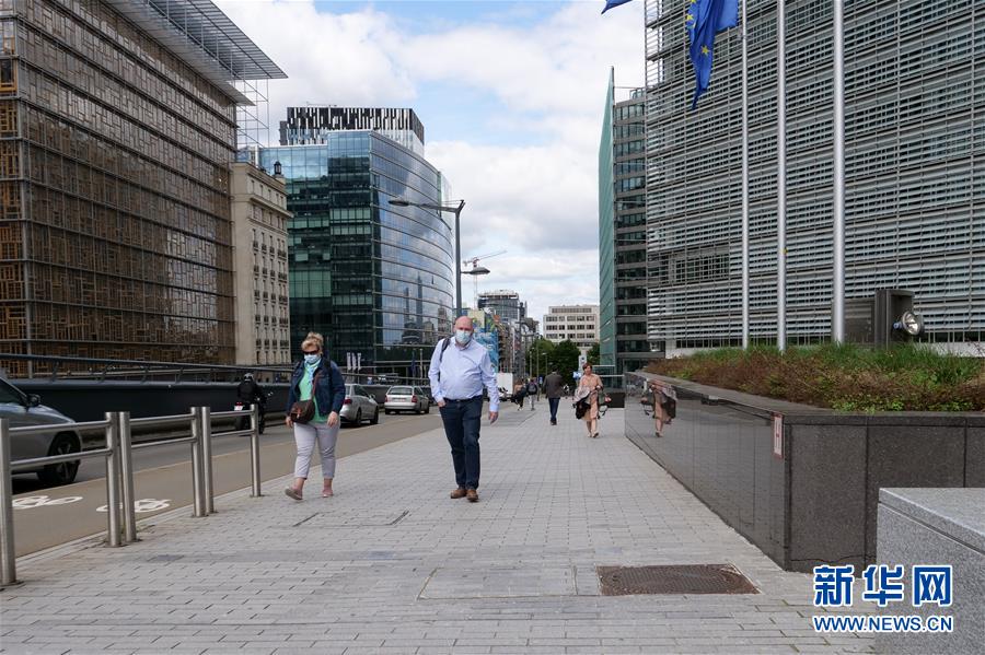 7月29日,在比利時(shí)布魯塞爾,戴口罩的行人經(jīng)過歐盟委員會總部大樓。新華社記者張鋮攝