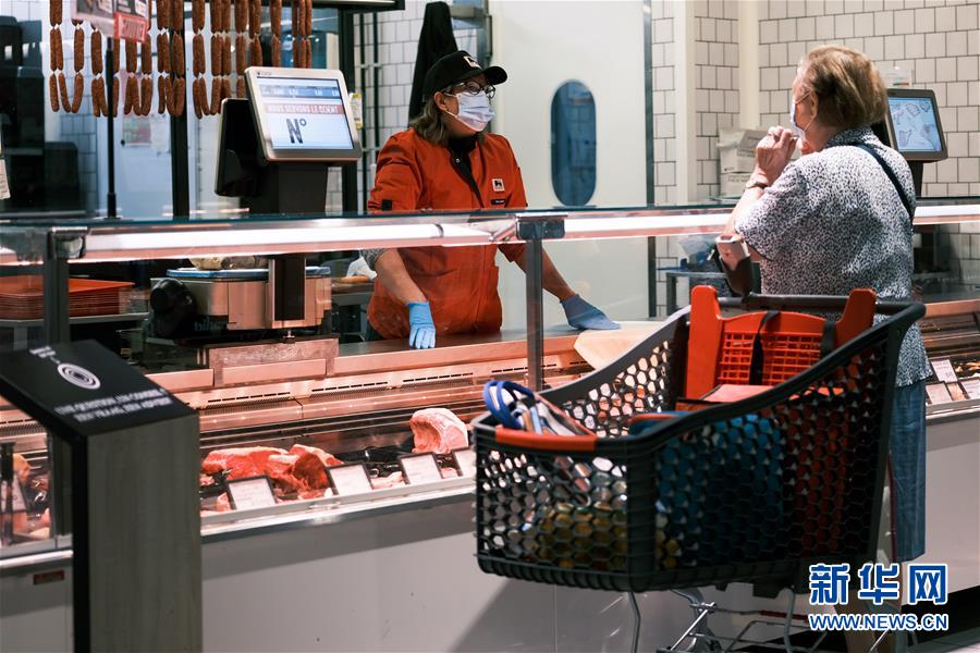 7月29日,一名戴口罩的顧客在比利時(shí)布魯塞爾一家超市采購。新華社記者張鋮攝
