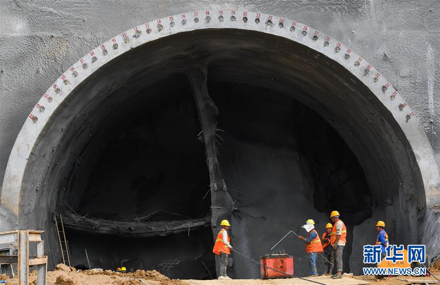 7月30日,中鐵四局施工人員在潮州東聯(lián)絡(luò)線馬頭山隧道進(jìn)行仰拱鋼筋焊接。新華社記者劉大偉攝