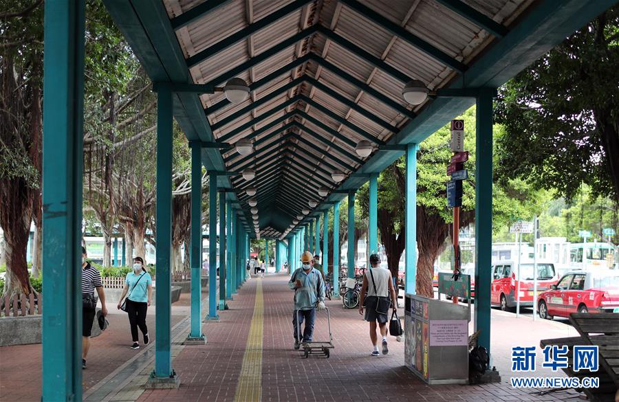 香港中環(huán)街頭,一位工人推車走過(7月29日拍攝)。新華社記者李鋼攝
