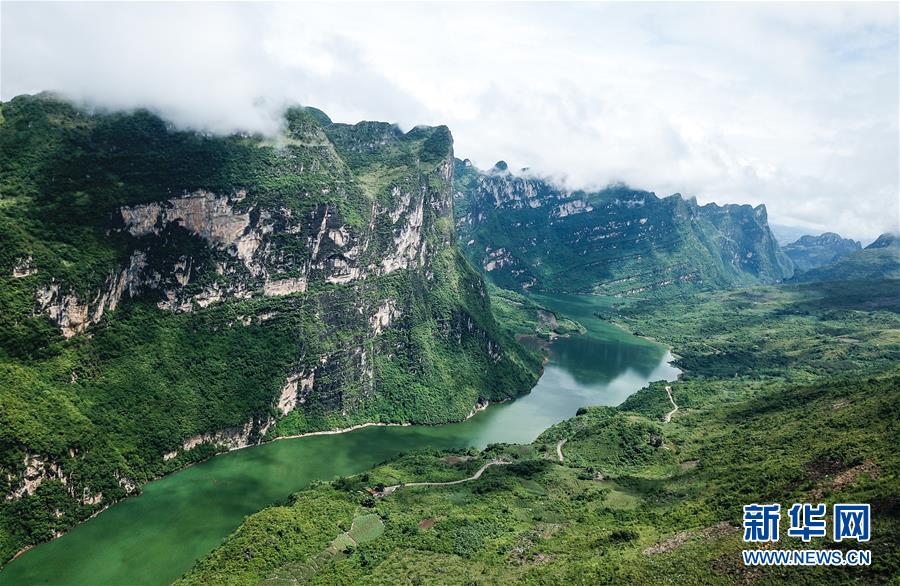貴州北盤江大峽谷國家濕地公園風(fēng)景(無人機照片,2018年8月7日攝)。新華社記者陶亮攝