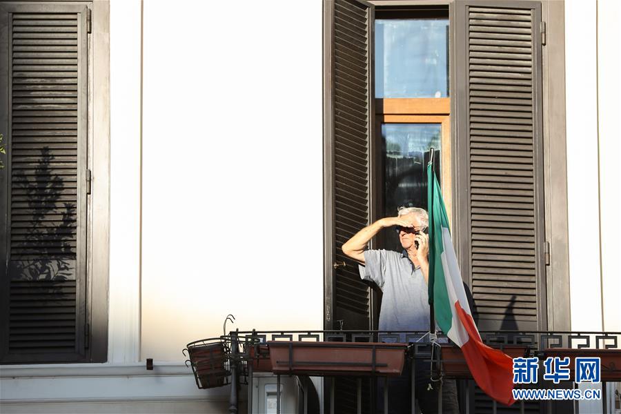 8月4日,在意大利首都羅馬,一名男子在陽臺(tái)打電話。受新冠疫情影響,今年夏天羅馬的歷史中心區(qū)游客比往年明顯減少。新華社記者程婷婷攝