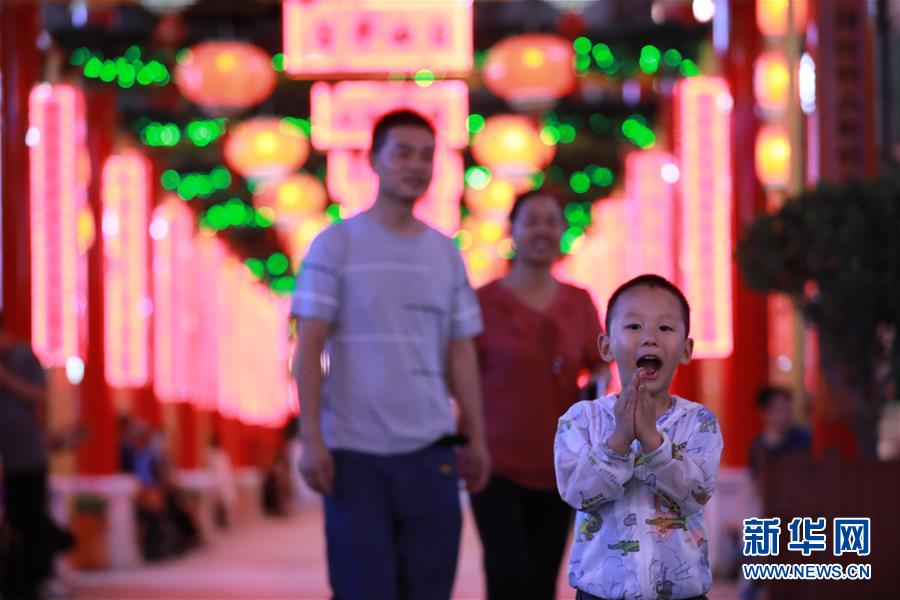 7月15日,人們在舟曲縣老縣城的步行街上散步。
