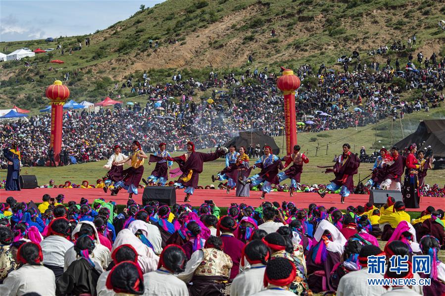 8月7日,在西藏首屆弦子舞展演現(xiàn)場,演出人員在表演舞蹈《弦鼓情緣》。當(dāng)日,西藏首屆弦子舞展演在昌都市芒康縣舉行。眾多演員同臺獻(xiàn)藝,表演國家級非物質(zhì)文化遺產(chǎn)弦子舞,吸引西藏各地的群眾前來觀看。新華社記者孫非攝